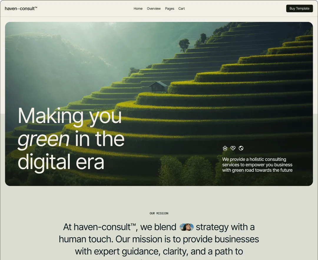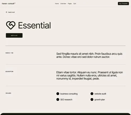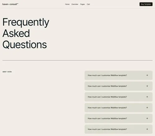 Explore multiple layouts and creative animations with haven-consult™ Webflow template.